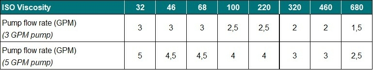 Electrically powered systems: If the filtration unit is electrically powered, it should not exceed a maximum pressure of 150 psi (or 10.34 bar). Additionally, electrically powered systems are limited to handling lubricating oils with viscosities ranging from ISO 10 to 680. Viscosity is a measure of a fluid's resistance to flow and is usually specified using the ISO viscosity grade system.