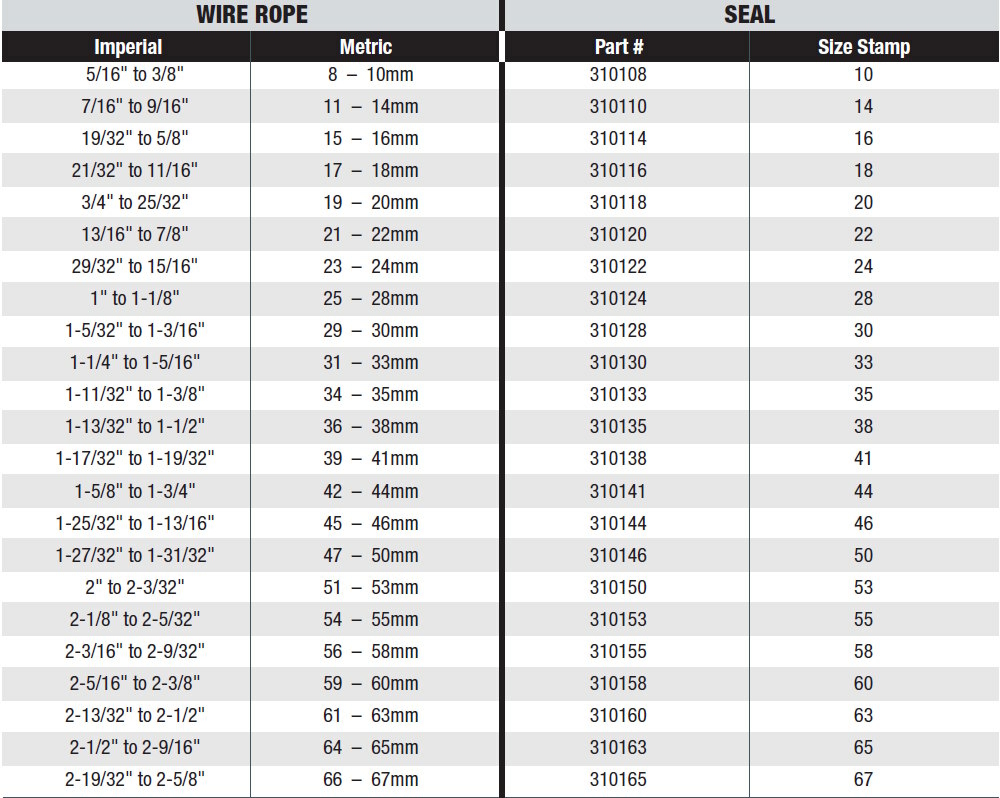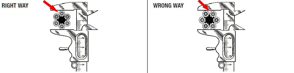 Determine the size of your wire rope(s). The Wire Rope Lubricator can lubricate ropes from 5/16" (8mm) through to 2.625" (67mm). It is recommended that wire ropes be physically measured prior to ordering seals and scrapers as ropes in service can stretch and sizes may vary. The illustrations below show how to measure a wire rope.